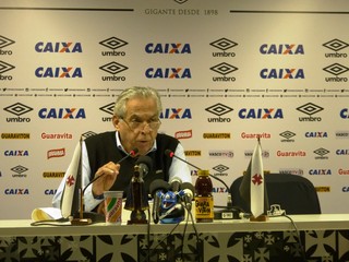 Em coletiva de imprensa de última hora, pouco depois da reunião com os atletas e comissão técnica, Eurico Miranda voltou a garantir que o clube não cai para a Série B com ele no comando. Depois de desautorizar Dagoberto publicamente - que disse na terceira rodada que a realidade do Vasco não era título -, o presidente, hoje, fala em escapar do rebaixamento.